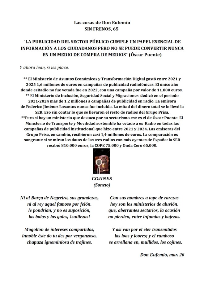 PD: Cada vez quedan menos actores de aquella escenificación que sepan su papel y que puedan contar el guion. Tengo en mi lista a día de hoy sólo tres nombres. Uno es militar. Los otros dos no. Que conozcan parte del libreto también los hay porque estaban engrasando la cadena que todo lo unía, pero no pueden ir más allá del eslabón superior e inferior. Suposiciones hay muchas, pero casi todas equivocadas. El 23F tiene de oficial tanto como puede tenerlo un Real Decreto o una resolución aprobada en Las Cortes.