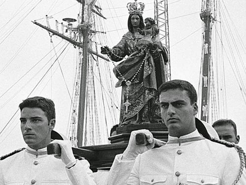 La liturgia de la misa marinera – no muy conocida fuera del ambiente naval – reza en el ofertorio las siguientes estrofas: “Bendícenos Señor, bendice a España, danos vientos propicios a nuestras naves, sirviendo a España, Señor, Señor…..”.02.- guardiamarinas-horizonta