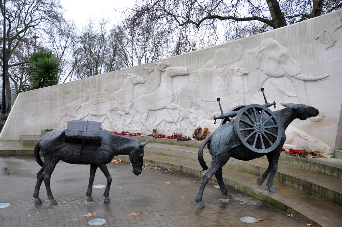 ‹‹Este monumento está dedicado a todos los animales que sirvieron y murieron junto a las fuerzas británicas y aliadas en las guerras y campañas a través de los tiempos››.