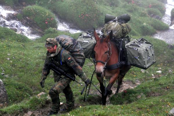 Buenos días, General Dávila. Me encanta este artículo. Ahora parece que todos andan pensando en desplazar las cosas con helicópteros, sorteando los caminos más escarpados y duros; supongo que el ejército alemán cree que todavía quedan sitios a los que no se pueden desplazar los equipos cómodamente o de modo seguro por vía aérea y, sin embargo, no se conoce lugar hasta donde pueda llegar un soldado andando que no pueda acompañarse por su mulo, cargando con el material que aquel necesite, por muy duro que sea el camino o cualesquiera que sean las condiciones meteorológicas y, además, con una tarifa menor por carga (¡chupate esta, helicóptero!)..