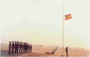Con los dientes apretados y la sensación de tener que dejar aquel territorio con el que estábamos comprometidos, a pesar de las traiciones que habíamos sufrido , una a una se fueron arriando las banderas de los diferentes cuarteles y destacamentos hasta la última, en Villa Cisneros, el día anterior a lo estipulado en los acuerdos de Madrid