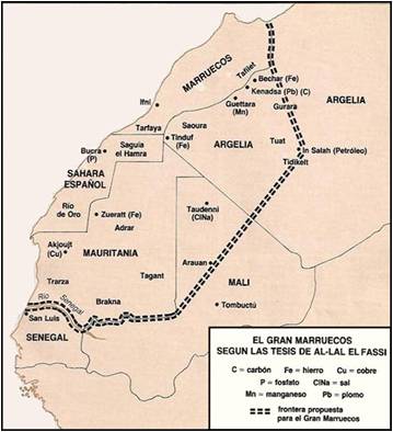 era proclamada por Al-Lal El Fassi, fundador del partido Istiqlal (Libertad). Un territorio, limitado al este por una imprecisa línea, al norte por el Mediterráneo y al sur por el Río Senegal.