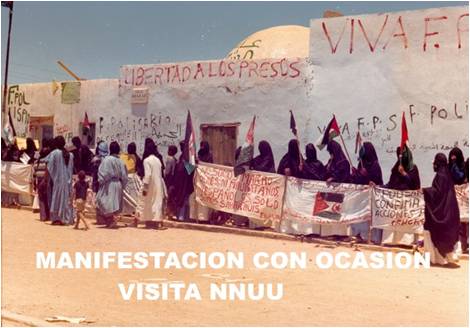 con una gran movilización y manifestaciones civiles. Esta actitud se repitió en todas las localidades que visitó la delegación de la ONU sin ningún impedimento por parte del Gobierno Español. Se acabada de escenificar la ruptura de los cauces de la población saharaui hacia su autodeterminación. Cuando se requirió a la fracción de esa población favorable a las tesis del trasvase de responsabilidades por parte de España de forma ordenada y que se agrupaba en torno al Partido de Unificación Nacional Saharaui (PUNS), se mostró remiso al principio manifestando que quería evitar enfrentamientos con el FPOLISARIO, para acabar escapándose a Marruecos su Secretario General, Hali Hena Rachid, llevándose los caudales de la organización. No sería la última traición que España sufriría de parte de la población saharaui.