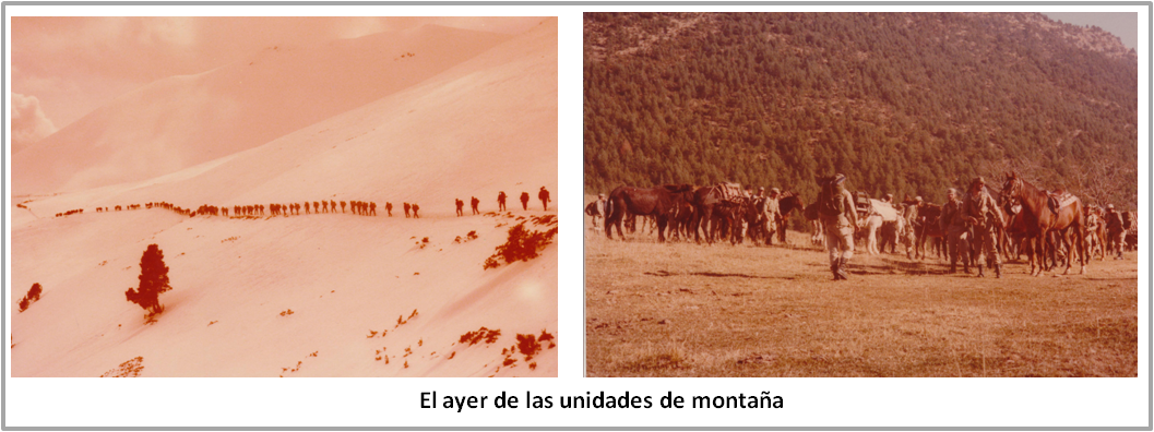 Desde entonces, en todos los planes de reorganización (léase de reducción) del Ejército, las unidades de montaña han sido las auténticas sufridoras, particularmente tras el ingreso de España en la OTAN. Con todo y con ello, los más viejos hemos conocido dos Divisiones de Montaña (Urgell al oeste y Navarra al oeste) más una Brigada de Alta montaña, desplegadas en el Pirineo. Si comparamos tales especializados efectivos con los cuatro únicos batallones de cazadores que permanecen en la actualidad: BCZM Montejurra en Aizoain , BCZM Pirineos en Jaca, BCZM Barcelona en la ciudad condal y el BCZM Badajoz en San Clemente de Sasebas, se constata la dramática reducción de efectivos de montaña. Y nos encaminamos a un horizonte en el que solo sobrevivirá un único Batallón de Cazadores, el de Jaca, con una compañía de esquiadores escaladores y algunas compañías con adiestramiento en terreno montañoso dispersas entre las brigadas polivalentes. ¡Menos mal que subsiste la casa madre! La Escuela Militar de Montaña y Operaciones Especiales.