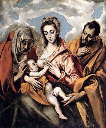 Aunque la idea central de la composición del cuadro gira en torno a un tema muy del agrado del pintor sobre el que algo ya se ha apuntado y sobre el que seguro volveremos, las manos, hay que destacar el “tratamiento” icónico que el genio presta a S. José, bastante más participativo que en otros cuadros anteriores en los que aparece como mera figura decorativa, tema éste sobre el que asimismo volveremos; y el también elaboradísimo trabajo que desarrolla y el cariño que se trasluce en el tratamiento del rostro de la Virgen: UN ROSTRO.