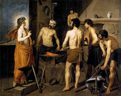 Velázquez se ha puesto en contacto con el arte italiano como se observa en las anatomías de los ayudantes de Vulcano, situados en diferentes posturas para demostrar el dominio de las figuras. También se advierte el interés mostrado por conseguir el efecto espacial, recurriendo a disponer figuras en diferentes planos, ocupando todo el espacio, relacionándose a través de líneas en zig-zag. La luz también ha experimentado un sensible cambio al modelar con ella las formas de los cuerpos que revelan la estructura de los huesos y músculos bajo la piel, por no hablar de su incidencia, y así lo resalto, en el acabado de los aceros.