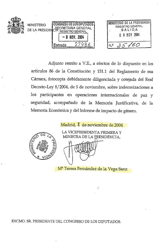 A pesar de ello, desde el «Gobierno» socialista se seguía dando la matraca con la ilegalidad de la guerra y de la «participación» española en la misma. La hipocresía del «Gobierno» quedaba de manifiesto en el documento firmado por la vicepresidenta Mª Teresa Fdez de la Vega donde se reconocía que se trataba de «operaciones innternacionales de paz y seguridad»