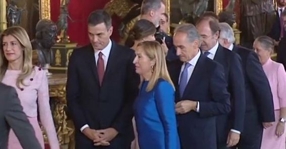 El besamanos real deja un momento para la historia de la democracia español: el espantoso ridículo de Pedro Sánchez y Begoña Gómez en el besamanos de los Reyes al colocarse al lado de los Reyes para saludar.