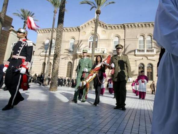 Era especialmente llamativo el silencio ante el paso de la escuadra de gastadores y mandos, solo roto por las fuertes pisadas y el cambio del cetmes de un brazo a otro, flanqueando el Viernes Santo el Santo Sepulcro, y cuyas armas iban con la bocacha mirando hacia abajo en señal de luto. Son tiempos en los que todos cuantos presenciábamos las procesiones veíamos los honores militares que se le rendían a las Imágenes sagradas y al Santísimo Sacramento, sonando el himno nacional y presentándole armas, así como, durante el Viernes Santo la Bandera Nacional se encontraba a media asta. Incluso, los militares de graduación llevaban un brazalete negro en señal de duelo, así como la Guardia Civil llevaba el uniforme de gran gala haciendo carrera durante el recorrido por donde pasaba el cortejo procesional, en ocasiones montados a caballo.