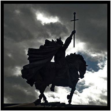 Como un buen bolo que se precie, y una vez cumplido el rito de admirar y homenajear al Río, tiempo es de que entremos en Toledo, cuyos elogiosos calificativos se irán desgranando en lo sucesivo; lo haremos por “la carretera de Madrid”, ahora A 42, que bajando de los Altos de Olías nos ofrece la primera y apabullante panorámica de la ciudad. Justo a su entrada nos encontramos con la estatua del rey castellano-leonés Alfonso VI, que en 1085 la reconquistó. Sí, sí, el mismo de “…En Santa Gadea de burgos, do juran los hijosdalgo…”