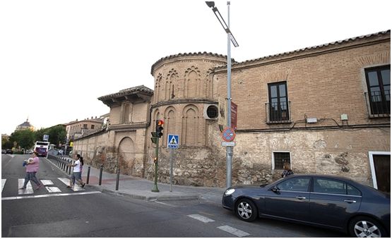 Hoy, su vetusto ábside de zócalo en mampostería y sus dos cuerpos con series en ladrillo de arcos ciegos de herradura y polilobulados, a duras penas lo podemos ver embutido entre la fachada referida, un almacén de una empresa de fontanería y artículos sanitarios, uno de esos cubos en plástico -terrazas fumadero- que han proliferado sobre las aceras, un hotel; y el atrio convertido en almacén de sobrantes de elementos de construcción.