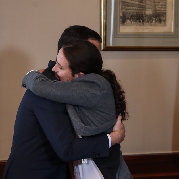 Tras este «emotivo» abrazo entre Sánchez e Iglesias, el primero comentó: «Reconozco que ha habido enfrentamientos dialécticos con el grupo confederal pero «bien está lo que bien acaba»»