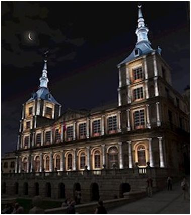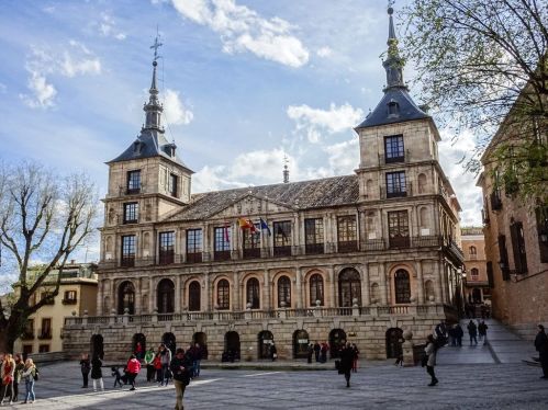 Todavía en la plaza que lleva su nombre comentaremos hoy un poco -sólo-por dentro y por fuera este notable edificio toledano que alberga la, digamos, vertiente institucional del consistorio toledano, en el que como veremos hicieron valer sus preferencias notables maestros de la época.
