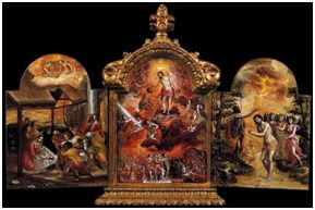 En la obra cumbre de este periodo juvenil, “El tríptico de Módena”, por un lado se aprecia una evidente influencia de elementos bizantinos pero ya incorpora las novedades procedentes del Renacimiento italiano. Este «bilingüismo» afectó a todos los artistas que trabajaron en la isla durante la segunda mitad del siglo XVI y Doménikos no sería una excepción. La imagen siguiente pertenece al anverso de dicha obra, que también está pintada por el reverso.