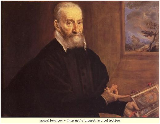 Aquí, y en otros más que veremos, la influencia de Tiziano en este tipo de retratos es significativa; el rostro del anciano artista llama profundamente la atención, apreciándose su orgullo y el paso del tiempo. La minuciosidad del dibujo resulta destacable mostrando los detalles del traje negro; las calidades de las telas y la iluminación parece corresponder a una fuente de luz artificial por el colorido anaranjado que se observa. La veracidad con la que Doménikos, colosal retratista, muestra a sus modelos le hacen uno de los mejores especialistas en este género; y en lo que, ahora llamaríamos un retrato psicológico, capta perfectamente el alma de los personajes a los que da vida en función de su acercamiento y empatía, o no, con los mismos. Según el grado y la calidad subjetiva de estos factores será el resultado que nos deja en el lienzo. Tiempo habrá para comprobarlo y compararlo.
