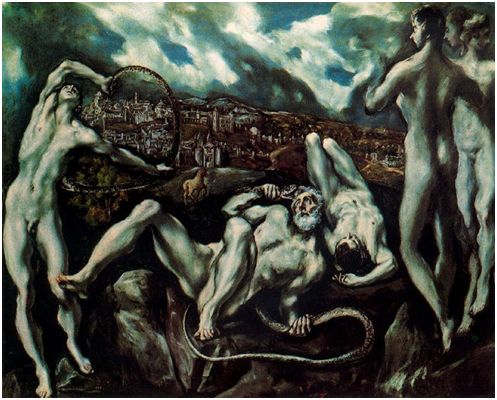 En relación a LEOCONTE, muy buen soneto sobre el inacabado cuadro. Se han dado varias interpretaciones. Algunas figuras se han atribuido al SAN PEDRO DEL ESCORIAL (cabeza de Laoconte), Galo Caido / Gigante Caido/ San Marcos Liberado o San Mauricio etc,En mi humilde opinión no es más que un paso más en la COMPETITIVIDAD DE LAS ARTES . El trata de que su pintura es hegemónica a cualquier escultura. Muchos expertos señalan «UN COMBATE DEL HOMBRE CONTRA EL MAL» y los demás indican la mano Inquisitiva por tratar de HEREJE AL ARZOPISMO BARTOLOMÉ DE CARRANZA.
