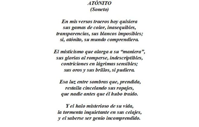 Comenzaré por orden inverso. Los dos sonetos a El Greco son como el Alfa y Omega, principio y fin de algo tan grandioso que escapa a mi humilde capacidad de comprensión, y por eso es más emocionante. Deberían imprimirlos en letras de oro macizo, y ponerlos, bien grandes y visibles, en la casa museo.