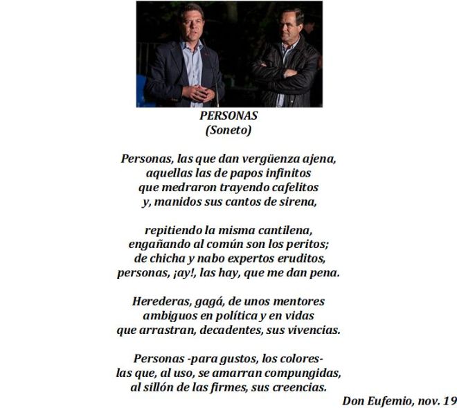 Pues sí, el presidente castellano manchego, de ascendencia política conocida, para llegar a sus responsabilidades no había ganado unas elecciones hasta la últimas regionales:¡“que hay gente pa tó”!