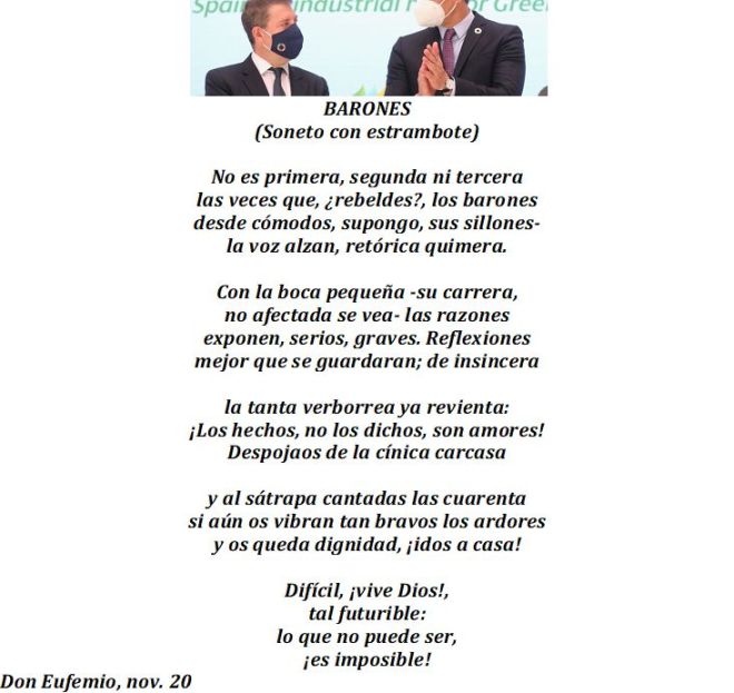 Yo no se hacer poesía, D. Eufemio, no me llamó Dios por ese camino, pero para decir las cosas claras me las apaño bastante bien.