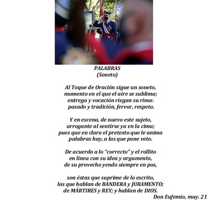 El cambio de la letra , del poema que adoptó el Ejército , como responso oficial en sus funerales, fue “ retocado “, por un inclino personaje, del que no merece que se le nombre.. Daré una pista ( ministro de Defensa ).