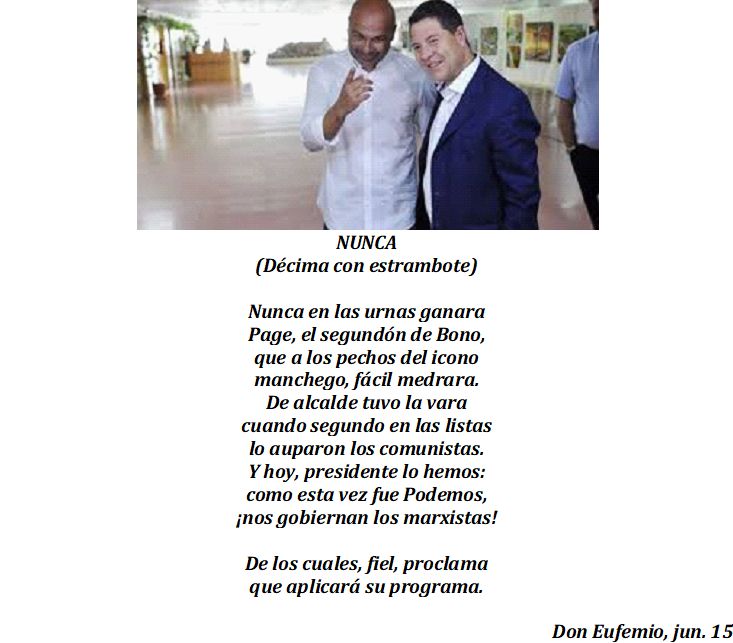 Pues sí, el presidente castellano manchego, de ascendencia política conocida, para llegar a sus responsabilidades no había ganado unas elecciones hasta la últimas regionales:¡“que hay gente pa tó”!