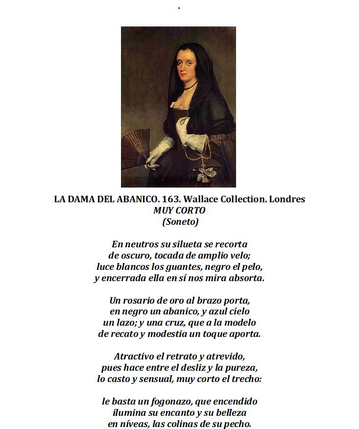 Y por lo menos quería celebrar sus sonetos, tanto de un relato como del otro, que despejan un poco la mente, porque provocan una sonrisa o porque describen un cuadro sobre el cual tengo las mismas dudas que D. Rafael. Tiene en la entrada del cabello el famoso pico de viuda, y quizás a eso se deban los velos negros, luto bastante aliviado por el color del vestido, diría yo. La calidad de la pintura no se discute, igual que tampoco podemos discutir la cárcel que merecen esos a los que España robaba, pero ya se va alargando demasiado una condena que debería ser más que evidente si la justicia no tuviera tanto miedo de los poderosos.