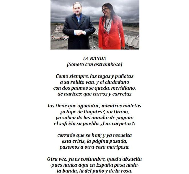 El caso es que desarrolladas por los más Altos Tribunales de la Nación sus irrevocables y notorias argumentaciones demostrativas de que algo y muy gordo sí que lo hubo, concluyen con la sensibilísima exquisitez de sus puñetas y enlodando sus togas, ya digo, resolviendo que de eso nada. Que si tú, que si yo; que eso a mí no me atañe, que si blanco que si negro; y cada mochuelo a su olivo: Don Ábalos -ante el Congreso una decena de declaraciones distintas, todas mentira naturalmente- con todo el Gobierno exonerado y Doña Delcy con sus maletas camino de su destino, guardando para después como la hacendosa hormiga; que nunca se sabe lo que puede pasar cuando una se vaya haciendo mayor, iría pensando, me imagino. Más abajo los sorprendentes argumentos y las, más aún, inentendibles y ajustadas a Derecho (¿?) resoluciones judiciales.