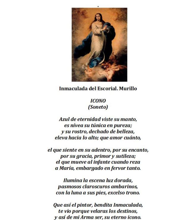 Sin embargo, a La Inmaculada, por miles de sontetos que ya tiene, porque no hay gran poeta que no le haya dedicado el mejor de su colección, nunca le sobrarán pues los merece todos.