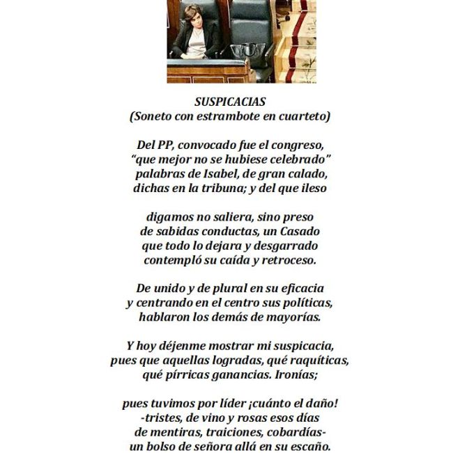 Aquí tienen, pues, dos colaboraciones: la primera pre, y la segunda post al congreso del PP: Depende ahora de ustedes el pensar en ello o mandar lo aquí escrito a la papelera de su indiferencia.