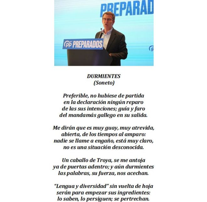 ¿Tardaremos mucho en conocer distintos y en algunos “territorios” con escasísima representación, minúsculos PP,s, del mismo nombre pero con variados y gentilicios apellidos? ¿Habrá en adelante un PP “de” en lugar de un PP “en”? ¿Conoceremos de la vida y milagros del PPV, PPCAT, PPA, PPCL, PPCM, PPGA, PPAS, PPCANT, PPR, PPBAL, PPCAN, PPM, PPE, PPM, PPAR, PPC, PPML… cuando cada uno hable, real o supuestamente , un idioma diferente y presente diversos e identitarios programas muy lejos de lo que debiera ser un partido unido y fuerte de ámbito nacional con los mismos postulados para toda la Nación? Ése es mi temor; que esto llegue a ser una realidad.