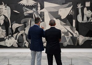 ¿Quién eligió la obra a visitar? ¿Venía impuesta desde fuera, o fueron los cultos y oscuros intérpretes de la Memoria Histórica los que eligieron ese <<grafiti>>, esos <<garabatos>> conocidos como el Guernica? ¿Qué le explicaría el Rey a Obama sobre esa obra concreta de Picasso? Deberíamos saberlo.