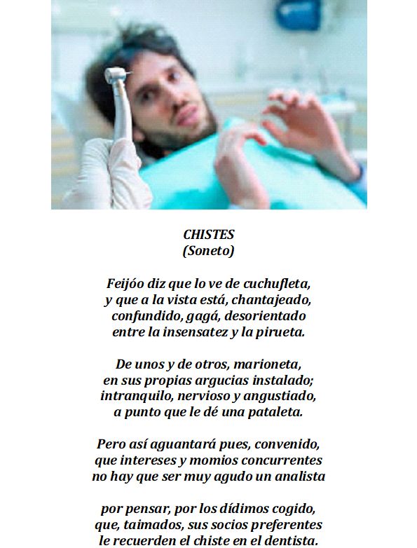Pues D. Eufemio, hoy sus palabras – y hacía tiempo que no me ocurría – me han hecho reir de lo lindo. No recordaba ese chiste de Eugenio, que por cierto era un genial humorista, pero que describe muy bien ciertas situaciones en las que vendría a cuento. Pena que no lo conociera, porque he pasado horas muy amargas sentada en el sillón de un dentista, demasiadas, y quizás habría venido bien decirle aquello de que ¿no nos vamos a hacer daño, verdad?