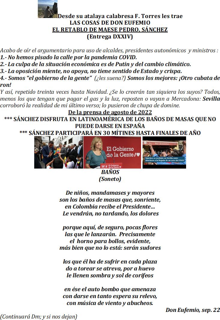 Mi Coronel. Es un placer leer sus artículos y sonetos, ya que dice la verdad de lo que ocurre en España, con un gobierno incompetente y la oposición complaciente, con las «lenguas», y varias cosas, más. No entiendo a Núñez Feijoo, como puede decir que se entiende mejor con el PNV separatista, que con Vox, por lo menos el último, no apoya a la desmembración de España. En resumidas cuentas, no confío en nadie. Muchas gracias y saludos para todos.