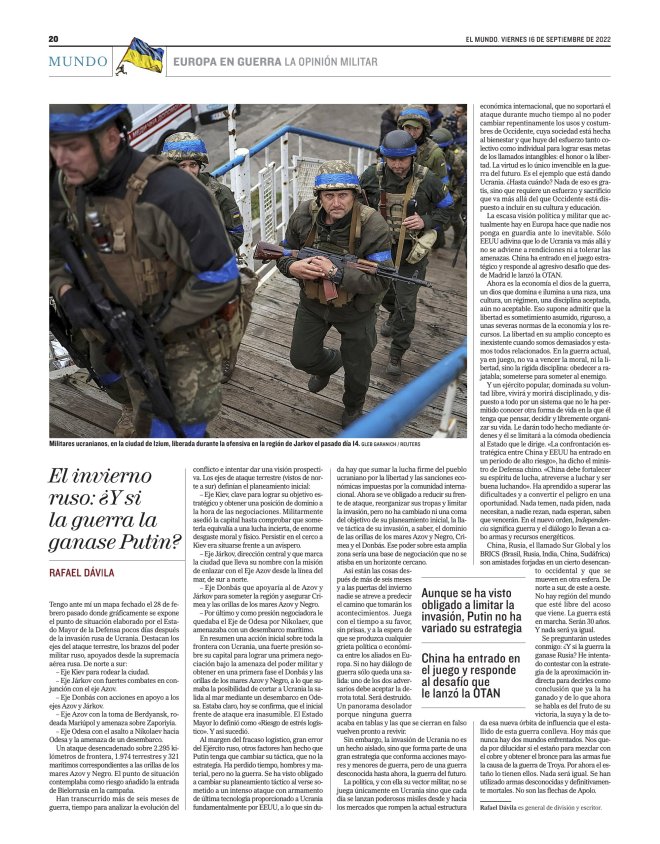 Casi no tengo duda de que la ganará Rusia, por desgracia, y sólo nos falta por ver en qué condiciones y a qué coste, y su visión general de la situación actual y futura la entiendo perfectamente y estoy totalmente de acuerdo, mal que nos pese, mi General
