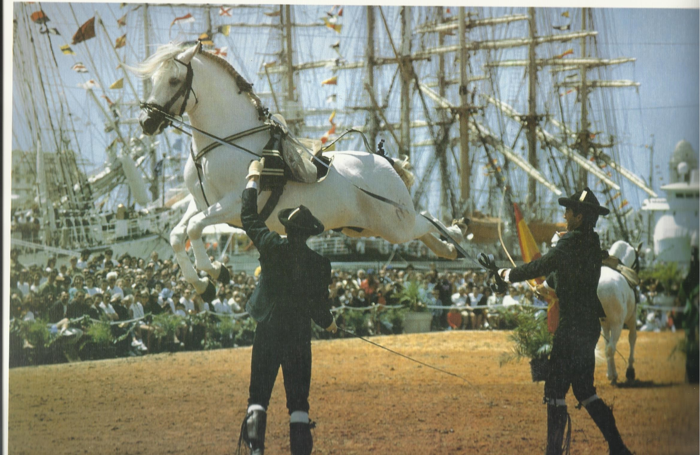 Evento» PRE (Pura Raza Español), despidiendo a la Regata Colón´92 en el puerto de Cádiz. (Cabriola: Movimiento resultante de la combinación de la corveta y la grupada).