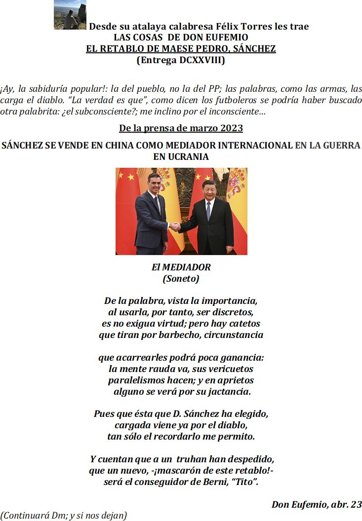 Igual todo el guirigay del MEDIADOR le suscitó verlo con EL CHINO. El soneto «EL MEDIADOR» se ajusta claramente.