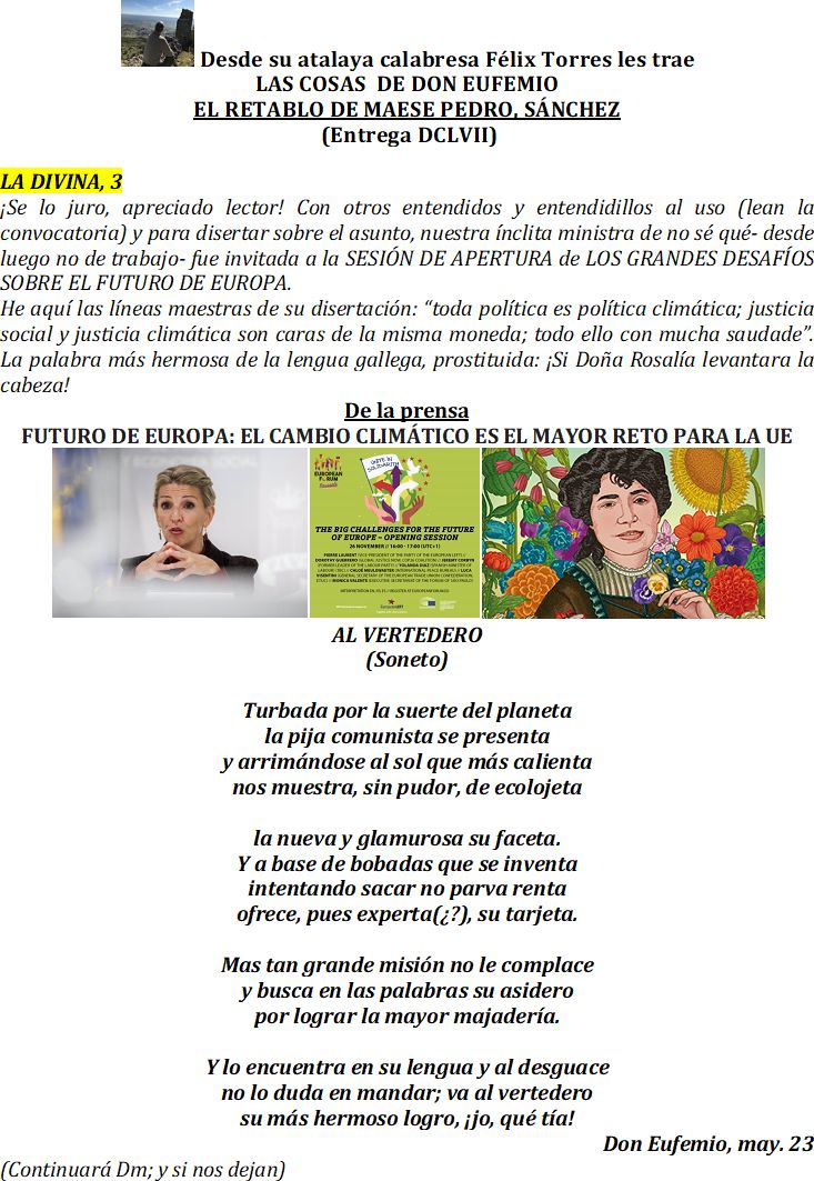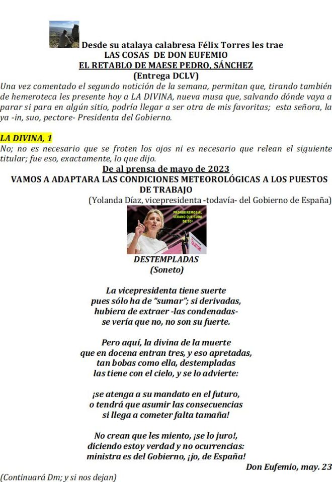 Desde su atalaya calabresa Félix Torres les trae LAS C OSAS DE DON EUFEMIO