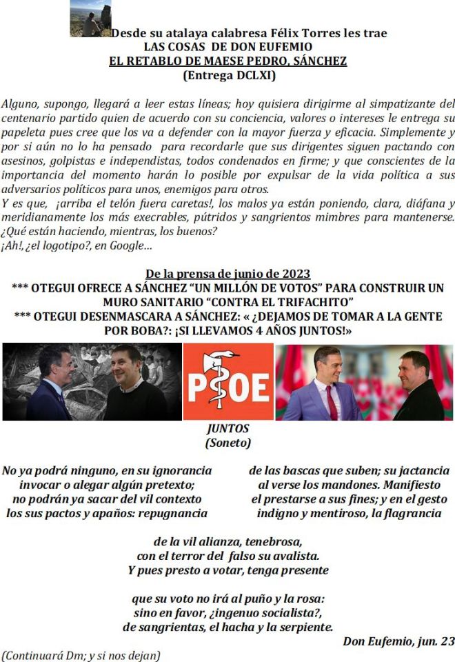 Louis Vuitton, el secreto de la Yoli; de ese bolsito tan caro, sólo se pueden sacar buenas ideas, como la de dejar en Tierra a la Irene, y permitir embarcar a su Sicaria, la Ioni Belarra, pese a no tener parentesco conocido con Juana la Loca, pero sí ideario igual al de la ETA/Bildu cuando nos salva la vida a los Contribuyentes Españoles que los financiamos; contibuyentes por cierto desagradecidos en la Comuna Valenciana con estos Salvadores, por aplaudir el Vergonzante Pacto del Marianizado Mal Menor con el Extremo Facherío, Pacto de la Verguenza fácilmente evitado en la Taifa Hortelana de Murcia por el Mar Menor, que contaminado por vertidos de Génovatrece, NO es, ni de lejos, el Menor de los Males ni los Mares, en comparación con el Hombre de Paz recordándole al Jefe de la Banda, que sus Múltiples Consumaciones Matrimoniales, durante estos CUATRO últimos años, los convierten en algo más que novios. Buenos días, don Eufemio y todos; y recuerden que la CULPA de todo la tiene Louis Vuitton.