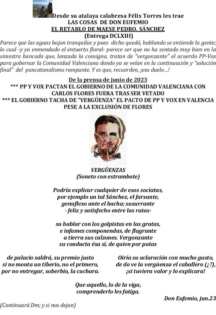 Ojalá, Don Félix, cuando termine el mes que viene, se le agoste la musa, pero no por tener la mente difusa, sino porque el retablo sea de política vida conclusa.