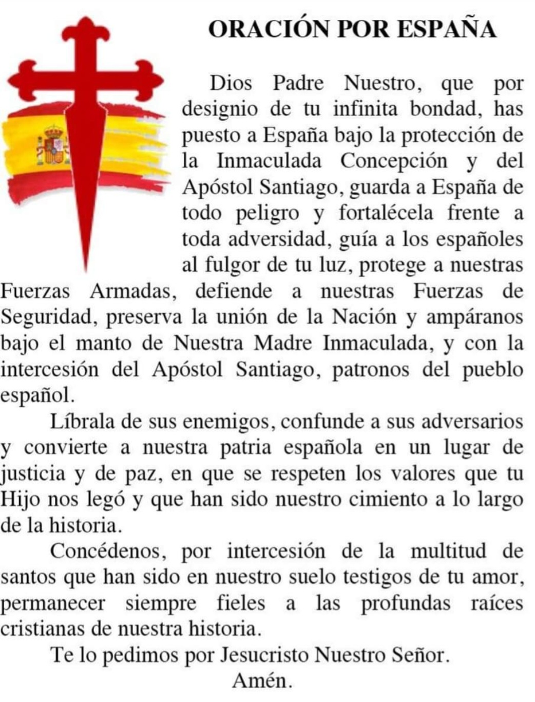 ORACIÓN POR ESPAÑA QUE NOS REMITE EL CORONEL ÁNGEL CERDIDO