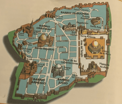 …Después de los Patriarcas, la historia de Palestina pasó por La Monarquía con los reyes Saúl, David y Salomón; posteriormente por las etapas: Romana, (con las 1ª y 2ª Revueltas judías y la aparición de los zelotes, primeros activistas religiosos judíos), siguieron los períodos Bizantino, Árabe, Cruzado (con la conquista de Jerusalén por Godofredo de Bouillón), Mameluco y Otomano; y acabaron con las guerras: Las dos Mundiales, el Mandato Inglés y las de la: Independencia, Seis Días y Yon Kippur.