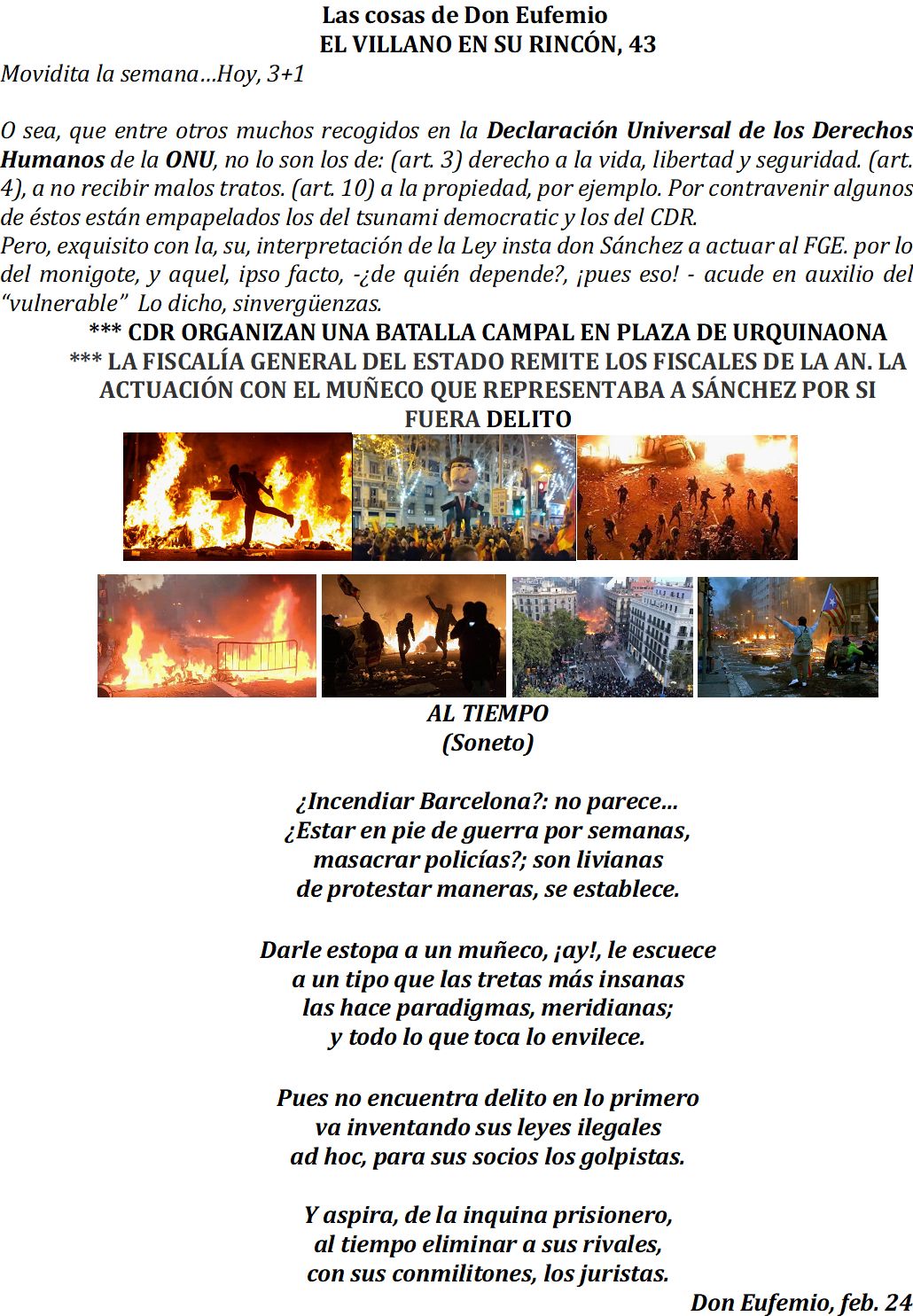 S2: “AL TIEMPO”. Clarifica todo ….Darle estopa a un muñeco, ¡ay!, le escuece..(Incendiar Barcelona y masacrar policías, eso les parece bien.