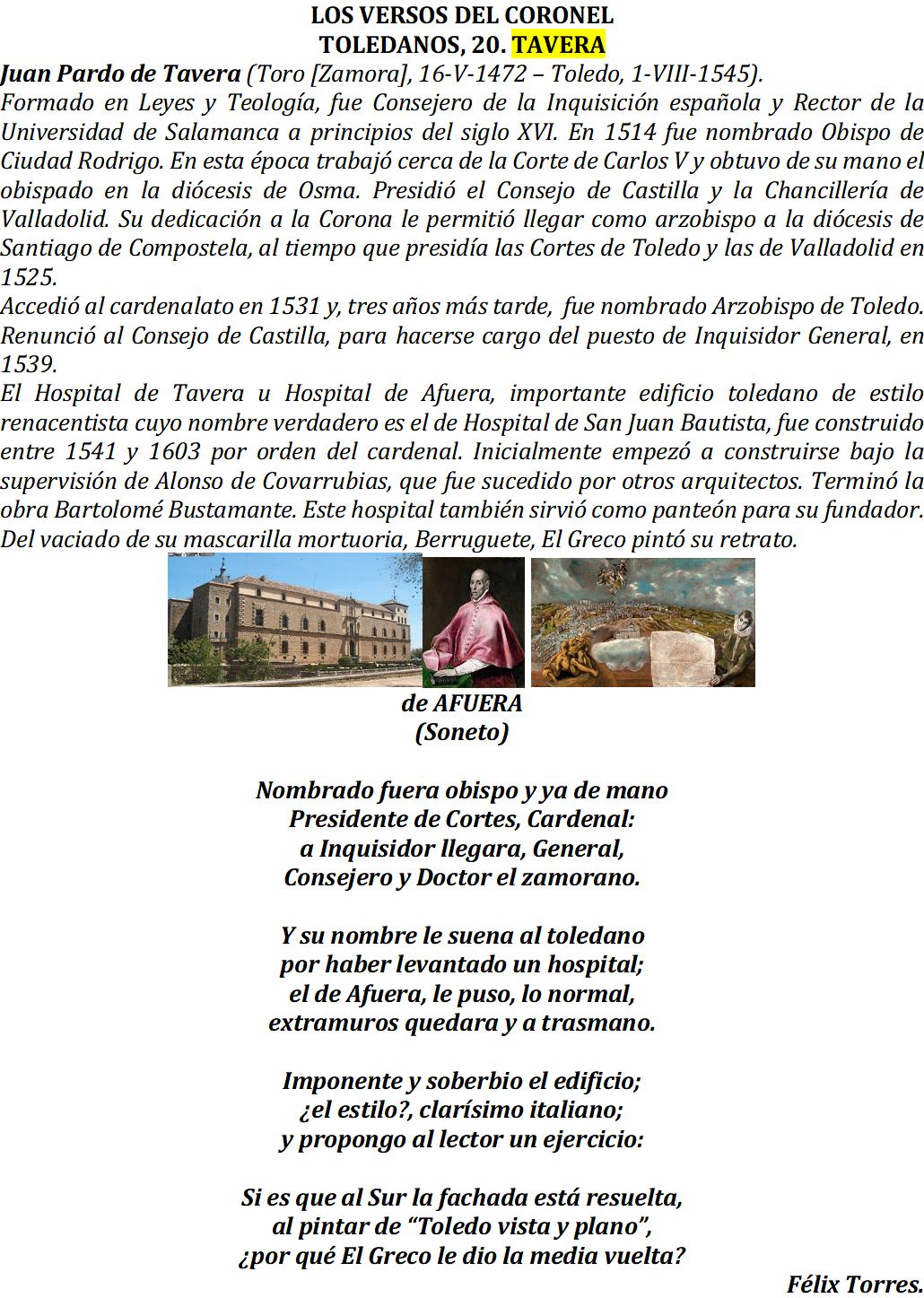 LOS VERSOS DEL CORONEL. TOLEDANOS. Félix Torres Murillo