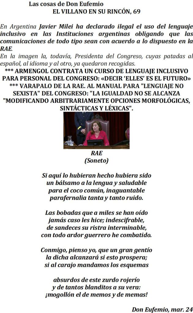T3: MILEI DECLARA ILEGAL EL LENGUAJE INCLUSIVO Y LA ARMENGOL CONTRATA UN CURSO DEINCLUSIVISMO PARA EL CONGRESO.