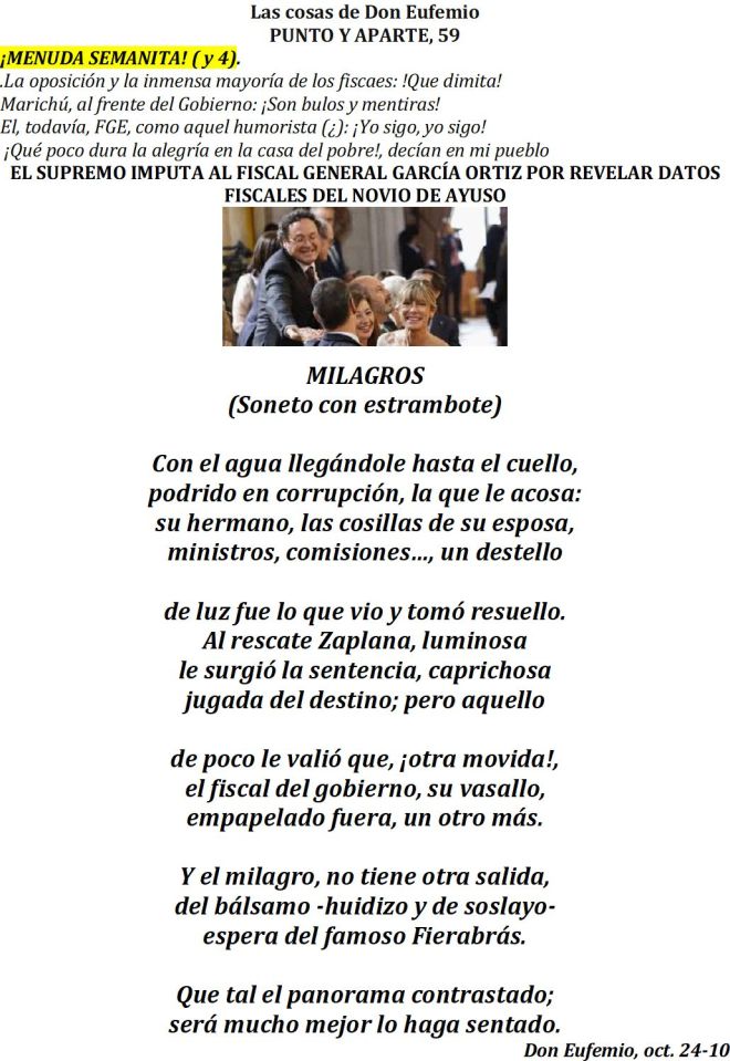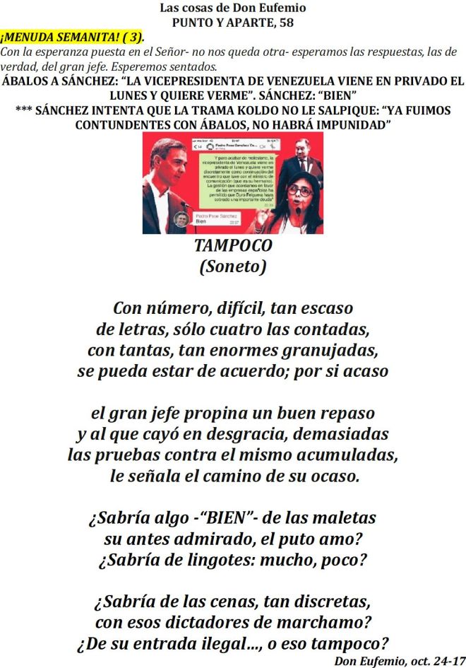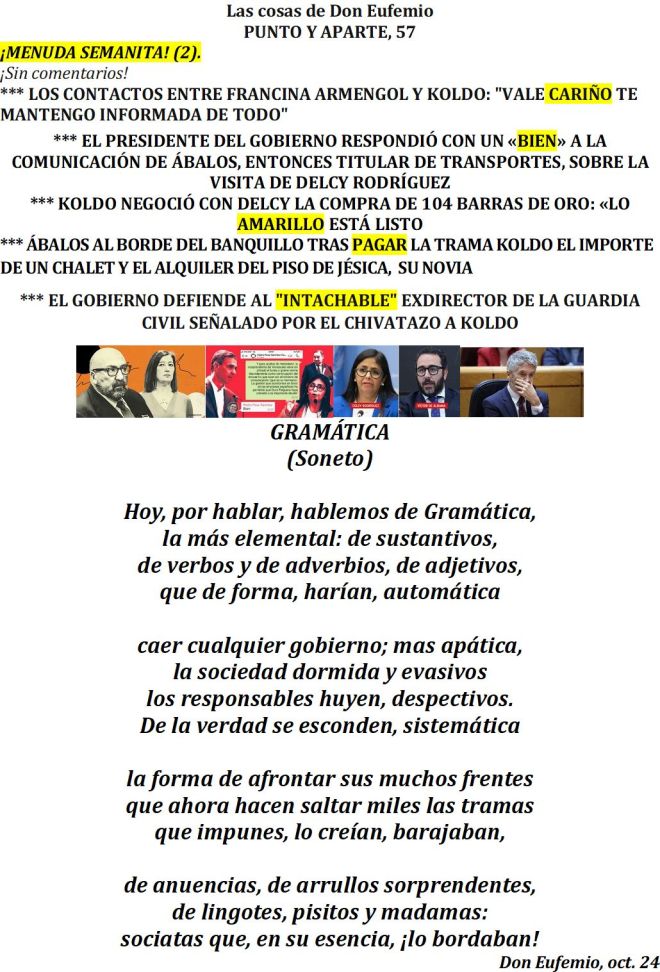 Muchas gracias Mi coronel. Son muchas cosas las ocurridas últimamente, pero esta gente se agarra a los sillones, y no dimite ninguna, si tenemos la suerte que la judicatura pueda ser libre, a lo mejor se ven «algunos» privados de su libertad, pero a veces soy bastante incrédula, Los malos siempre ganan, los buenos, quizás por ese afán de no ofender a nadie, fracasan. De todas formas, como pensaba Sto. Tomás, ver para creer. Saludos para todos.