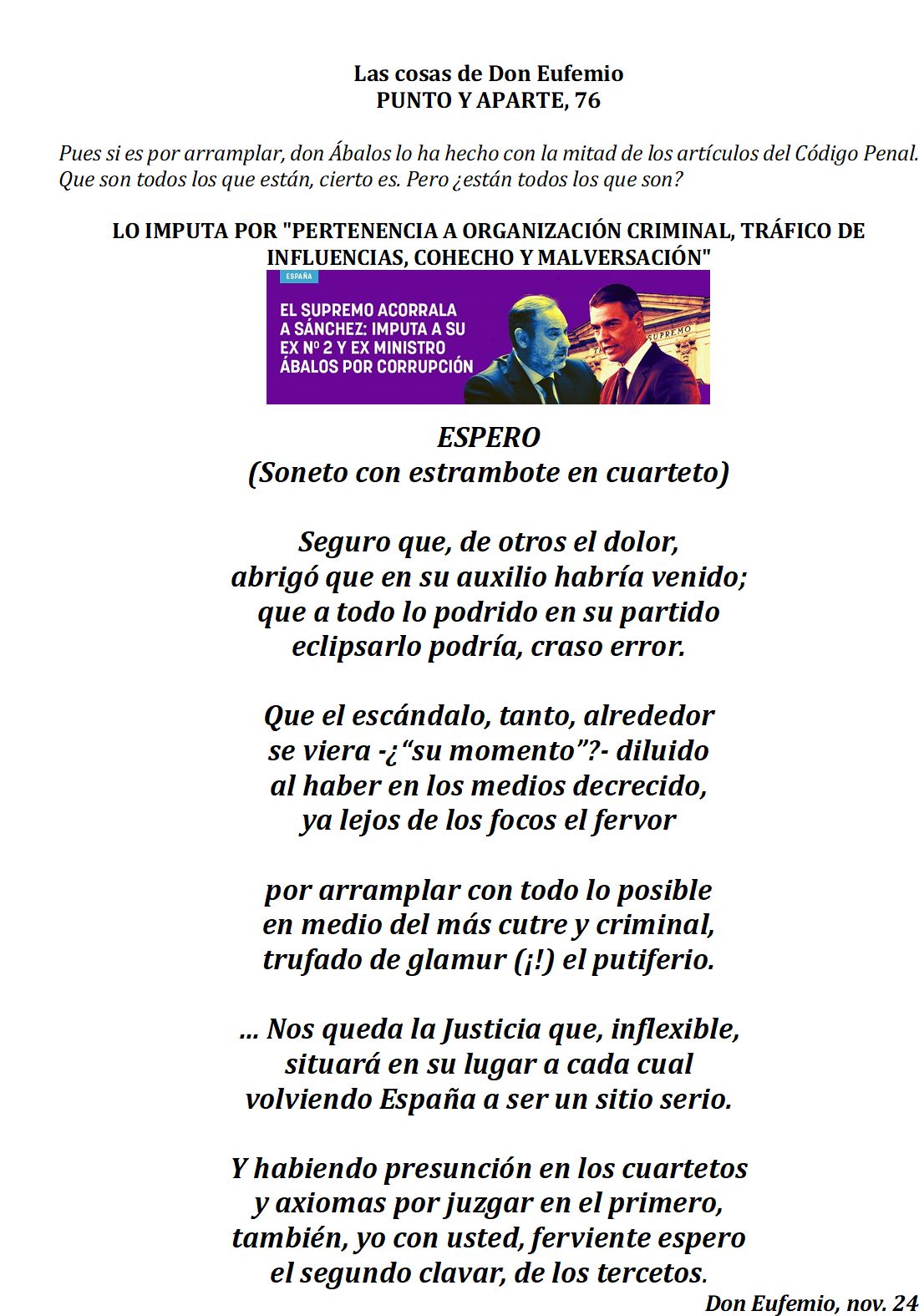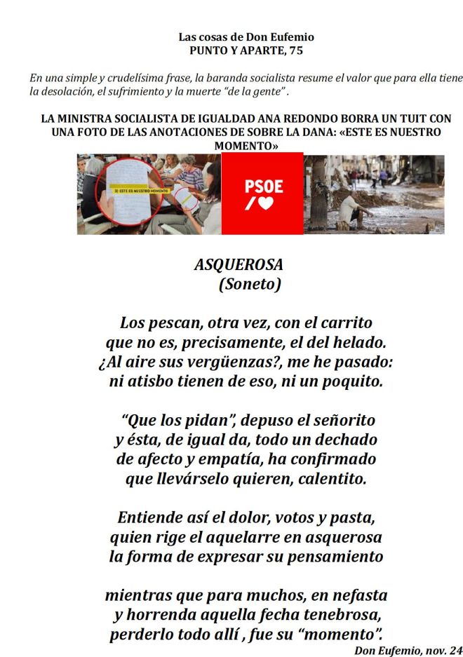 Sanchismo pasado por agua; si no fuera o fuese por lo caro y letal que nos sale, hasta sería, por ridículo, gracioso. Buenos días, Don Eufemio y todos.