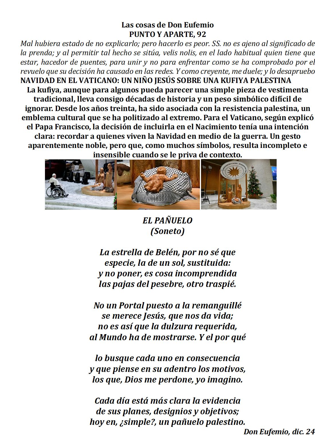 Sobre el siguiente tema, mejor no comentar. Si San Francisco de Asís, El Poverello, levantara la cabeza, volvería a agacharla de pena inmediatamente. Pero, en fin, cada uno es de donde es, de su pueblo; y eso no se puede cambiar ni remediar.