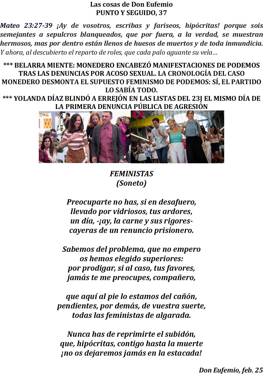 S2: FEMINISTAS: …..llevado por vidriosos tus ardores…..