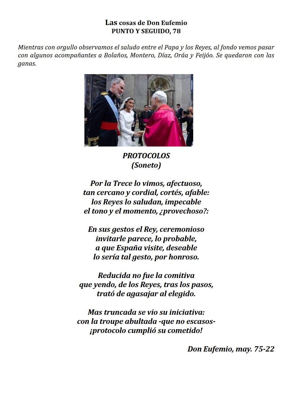 Buenos días, Don Eufemio, y todos. Ellos tienen Bula, atacan al Novio, los otros, sin tener Amparo Fiscal, aún así atacan al «mihemano» musical, mientras el Vaticano protocolo, deja fuera a los de la Bula, como adorno, forzados convidados de piedra, muy lejos de la Real y Regia Realeza; en verdad, en verdad os digo que la Bula era sólo Fiscal, y ya no Pontificia.