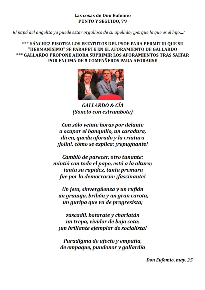 T1: P y S 79: SANCHEZ PISOTEA ESTATUTOS DE LA PSOE PARA QUE EL HERMANISIMO SE PARAPETE EN EL AFORAMIENTO DE GALLARDO.